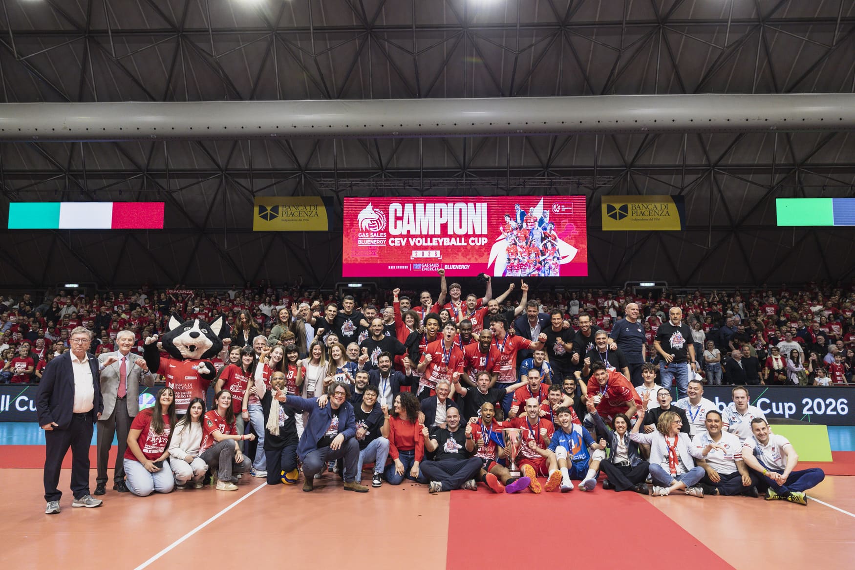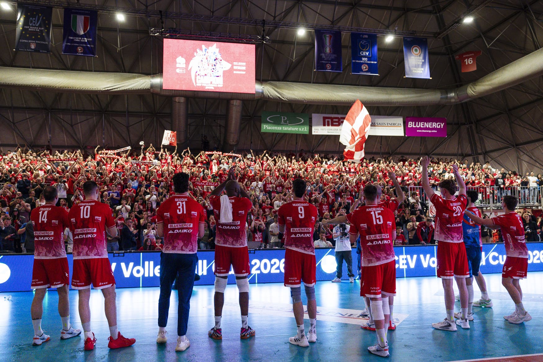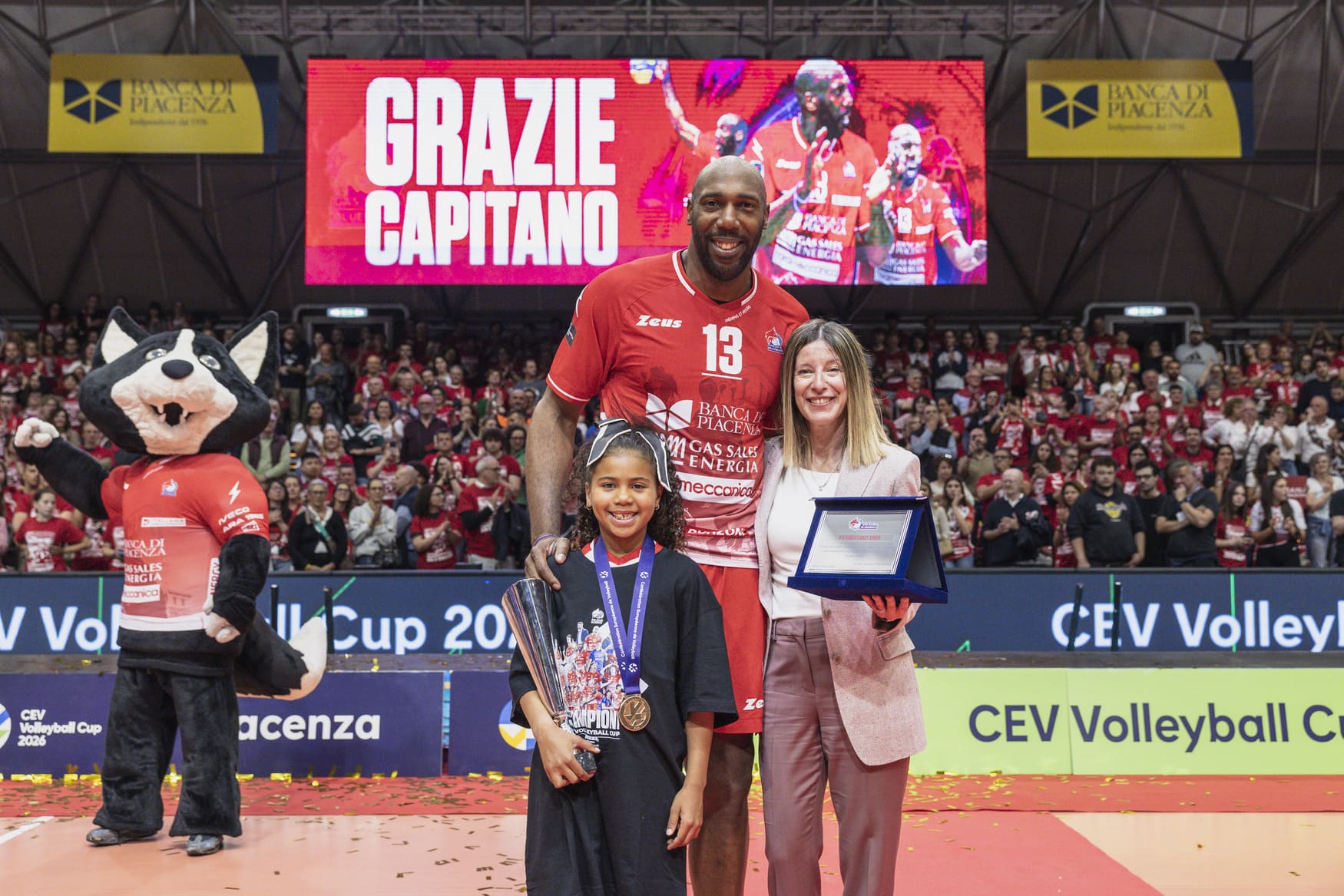 Un vero colpo d’occhio quello creatosi in un PalabancaSport gremito, con il colore rosso che dominava tra tutto il pubblico. Per gli spettatori è stato come essere in campo insieme ai giocatori, guidati da capitan Simon cha ha dato il suo addio a Piacenza nel migliore dei modi. Quando ha ricevuto la targa ricordo dalla presidente Elisabetta Curti, ha confessato: «Ero arrivato qui in questo Paese praticamente senza niente e Piacenza ha creduto in me, qui ho messo su famiglia, ho giocato a grandi livelli, sono sempre stato veramente felice. Bellissimo salutare questo splendido palazzetto con la vittoria di un titolo internazionale. Questa società è una realtà giovane che però ha già fatto tantissimo nella pallavolo e per la sua città. Per me indimenticabile».